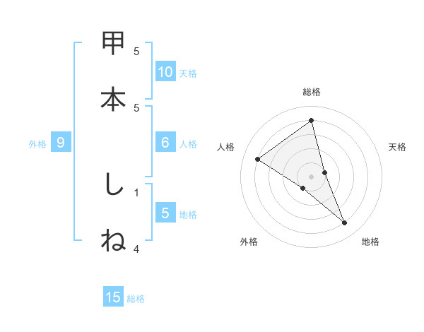 甲本 しねさんの総格は15画の4点!