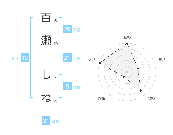 百瀬 しねさんの総格は31画の5点!
