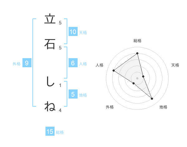立石 しねさんの総格は15画の4点!