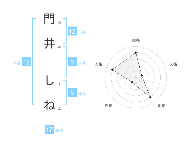 門井 しねさんの総格は17画の4点!