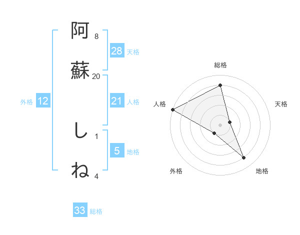 阿蘇 しねさんを姓名の画数から五運を鑑定