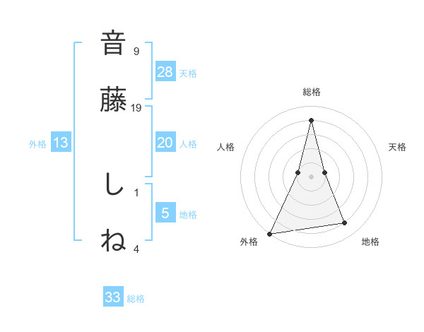 音藤 しねさんの外格は13画の5点!