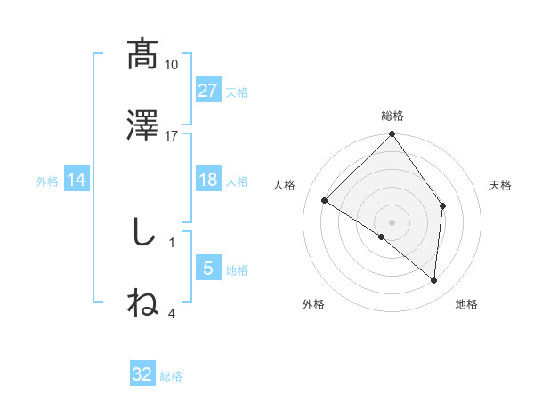 髙澤 しねさんの総格は32画の5点!