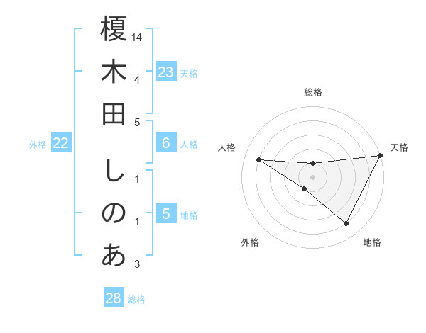 榎木田 しのあさんの天格は23画の5点!