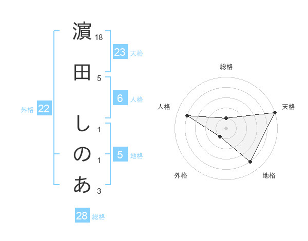 濵田 しのあさんを姓名の画数から五運を鑑定