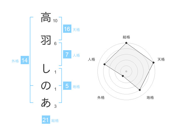 高羽 しのあさんを姓名の画数から五運を鑑定