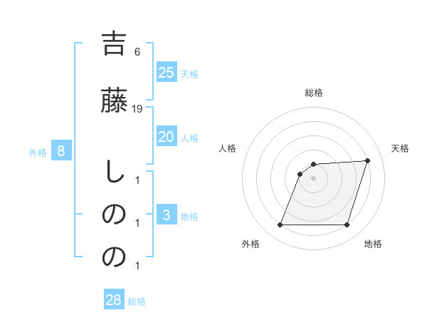 吉藤 しののさんを姓名の画数から五運を鑑定