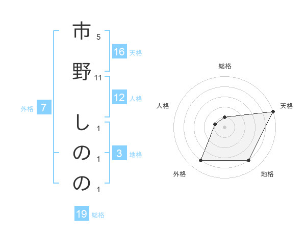 市野 しののさんの天格は16画の5点!