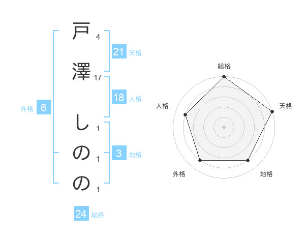 戸澤 しののさんの天格は21画の5点!
