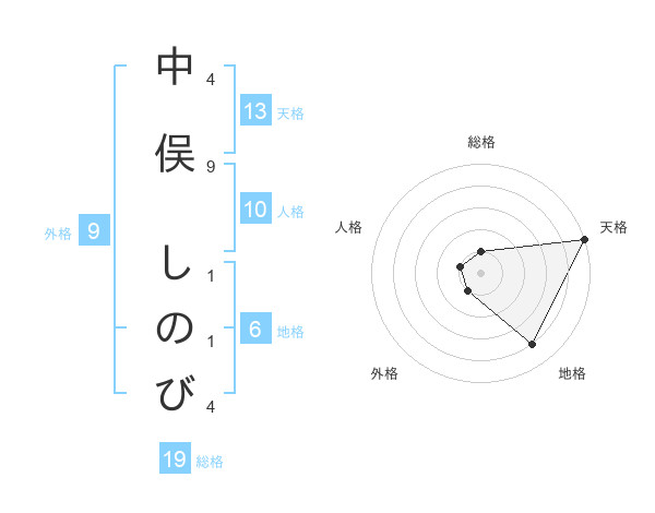 中俣 しのびさんの天格は13画の5点