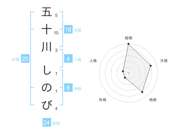 五十川 しのびさんを姓名の画数から五運を鑑定
