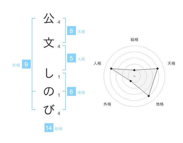 公文 しのびさんの総格は14画の1点!