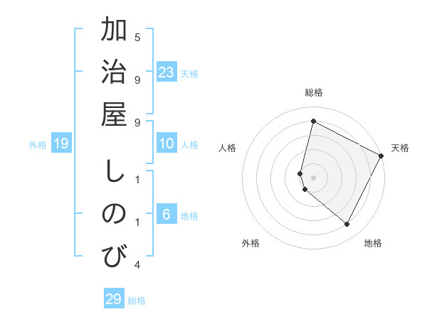 加治屋 しのびさんの天格は23画の5点!