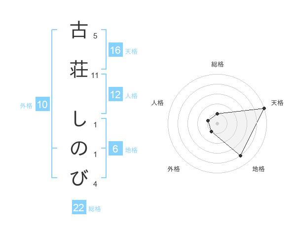 古荘 しのびさんを姓名の画数から五運を鑑定