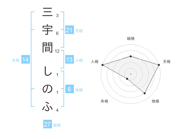 三宇間 しのふさんを姓名の画数から五運を鑑定