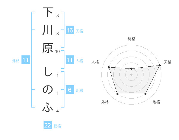 下川原 しのふさんの外格は11画の4点!