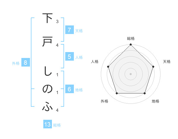下戸 しのふさんの総格は13画の5点