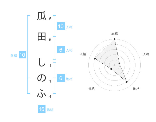 瓜田 しのふさんを姓名の画数から五運を鑑定