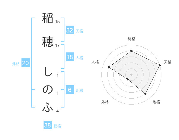稲穂 しのふさんの総格は38画の4点!
