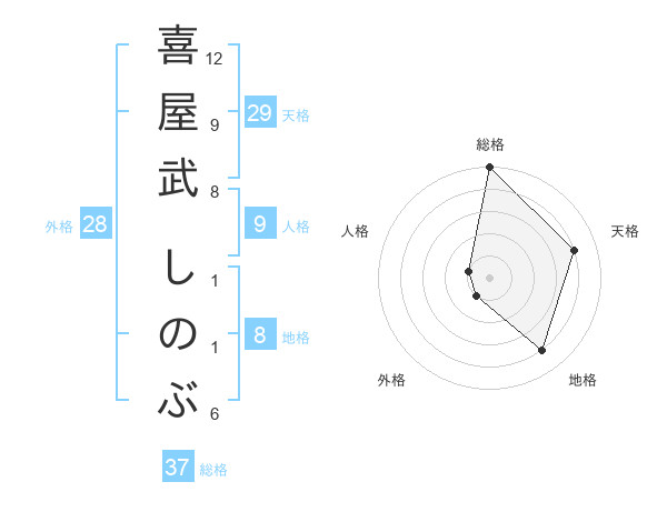 喜屋武 しのぶさんを姓名の画数から五運を鑑定