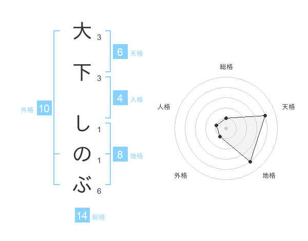 大下 しのぶさんを姓名の画数から五運を鑑定