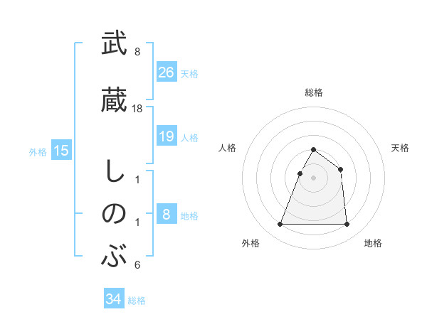 武蔵 しのぶさんを姓名の画数から五運を鑑定