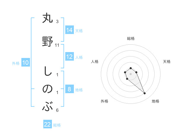 丸野 しのぶさんの総格は22画の1点!