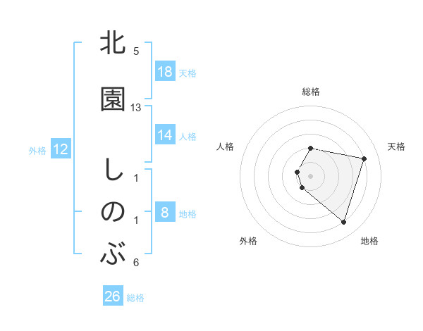北園 しのぶさんを姓名の画数から五運を鑑定