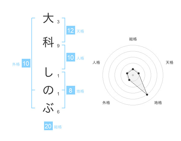 大科 しのぶさんの外格は10画の1点!