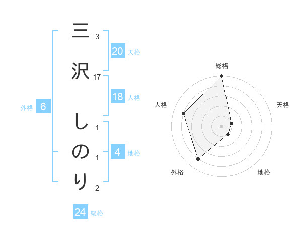 三沢 しのりさんを姓名の画数から五運を鑑定