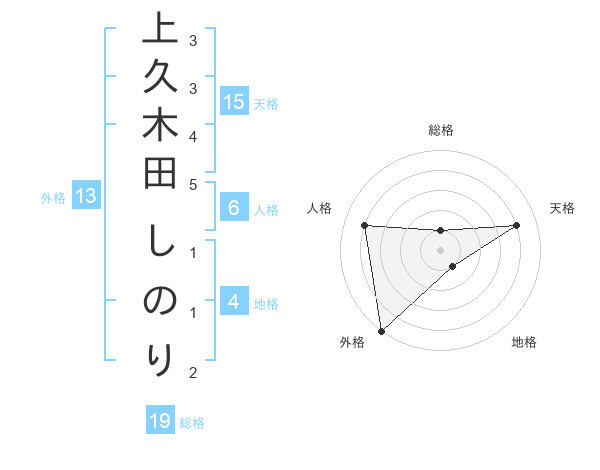 上久木田 しのりさんの外格は13画の5点!