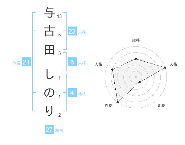 与古田 しのりさんを姓名の画数から五運を鑑定