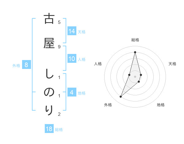 古屋 しのりさんを姓名の画数から五運を鑑定