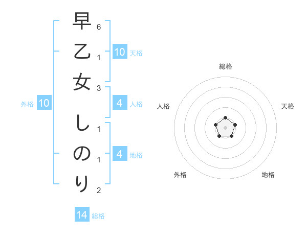 早乙女 しのりさんの総格は14画の1点