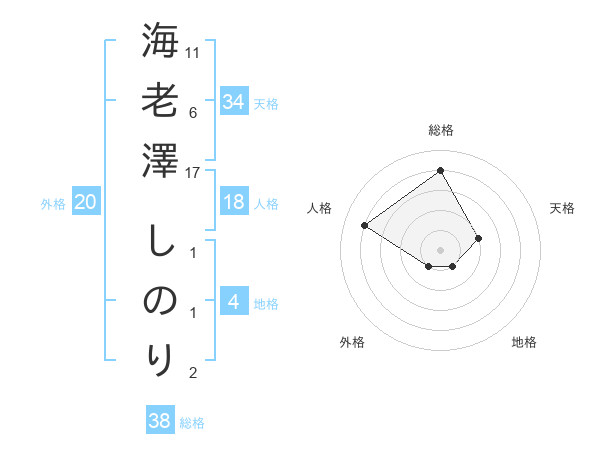 海老澤 しのりさんの総格は38画の4点!