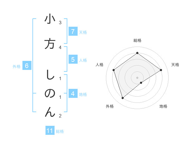 小方 しのんさんの総格は11画の4点!