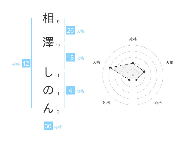 相澤 しのんさんの天格は26画の2点!