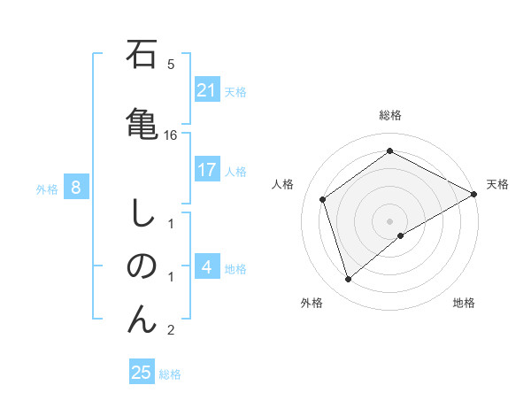 石亀 しのんさんを姓名の画数から五運を鑑定