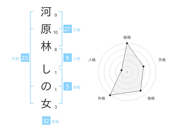 河原林 しの女さんを姓名の画数から五運を鑑定