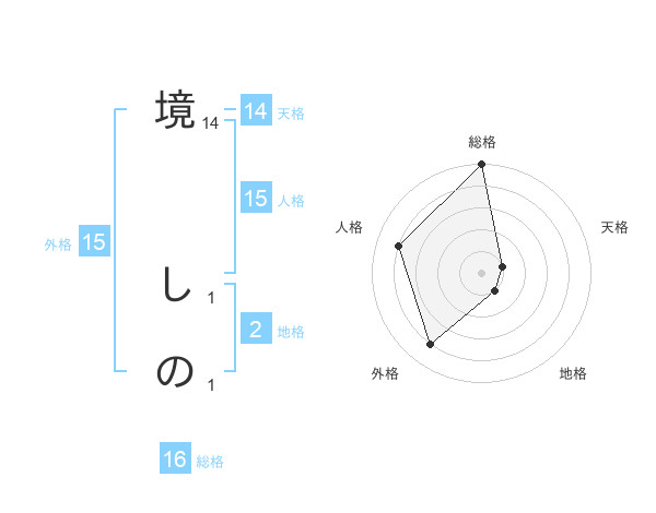 境 しのさんの外格は15画の4点!