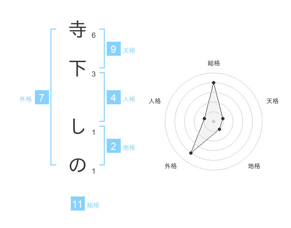 寺下 しのさんの総格は11画の4点!