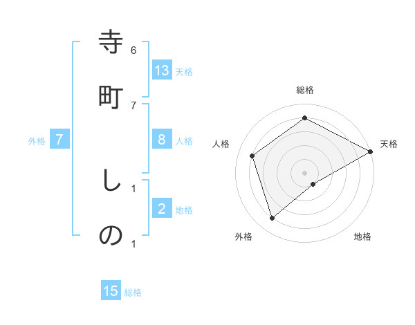 寺町 しのさんの総格は15画の4点!