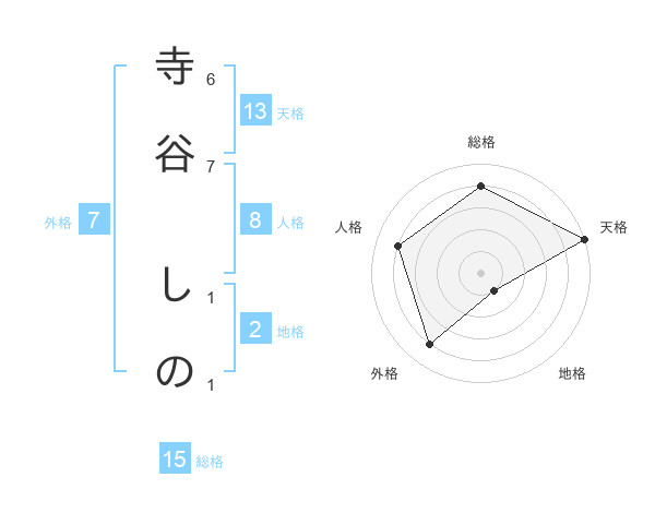 寺谷 しのさんの天格は13画の5点!