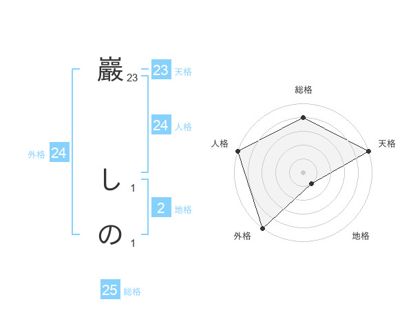 巖 しのさんの天格は23画の5点!