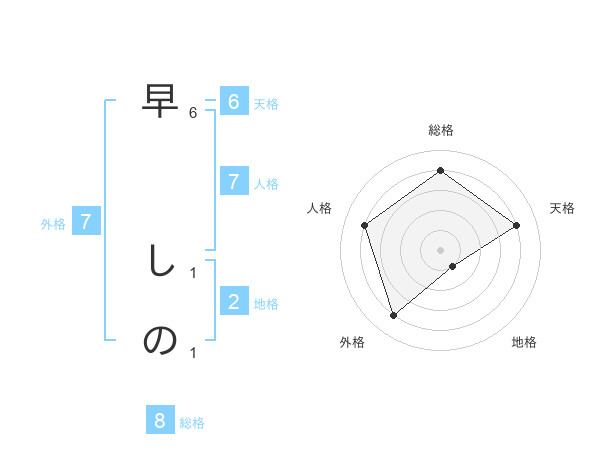 早 しのさんの総格は8画の4点!