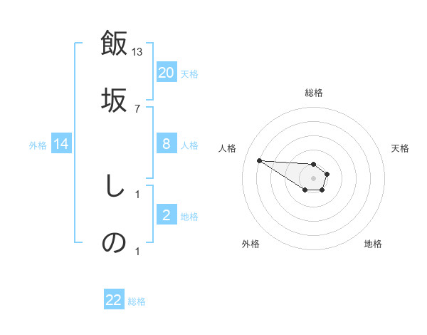 飯坂 しのさんの総格は22画の1点!