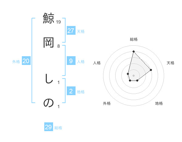 鯨岡 しのさんの天格は27画の3点!