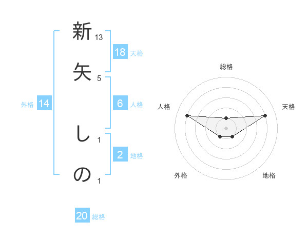 新矢 しのさんの天格は18画の4点!