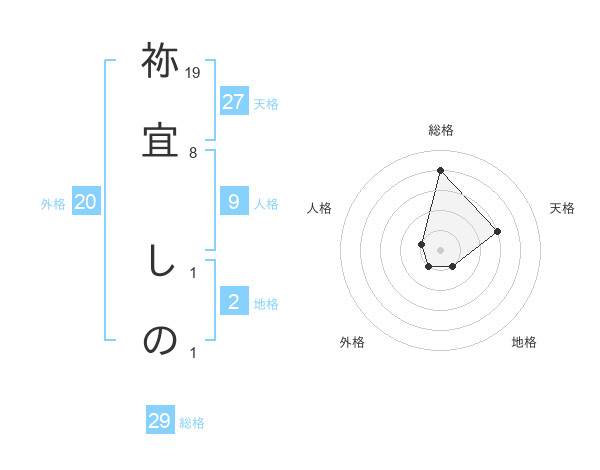 祢宜 しのさんの総格は29画の4点!