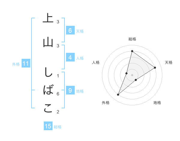 上山 しばこさんの総格は15画の4点!